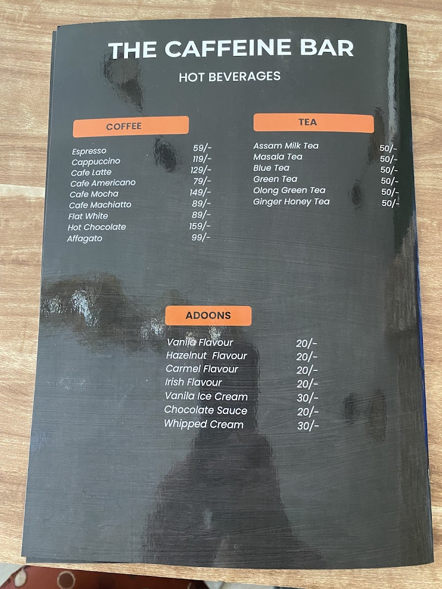 Welcome to The Caffeine Bar, a delightful oasis nestled on the 1st floor of Harbala Market in Bhangagarh, Guwahati. This charming café is perfect for anyone looking to unwind with quality food and drinks. The menu boasts an impressive selection of vegetarian treats, including the famous Veg Puff, scrumptious Paneer Hotdog, and mouthwatering Veg Pizza. Don't miss out on their unique ice teas—try the Peach Ice Tea for a refreshing twist.